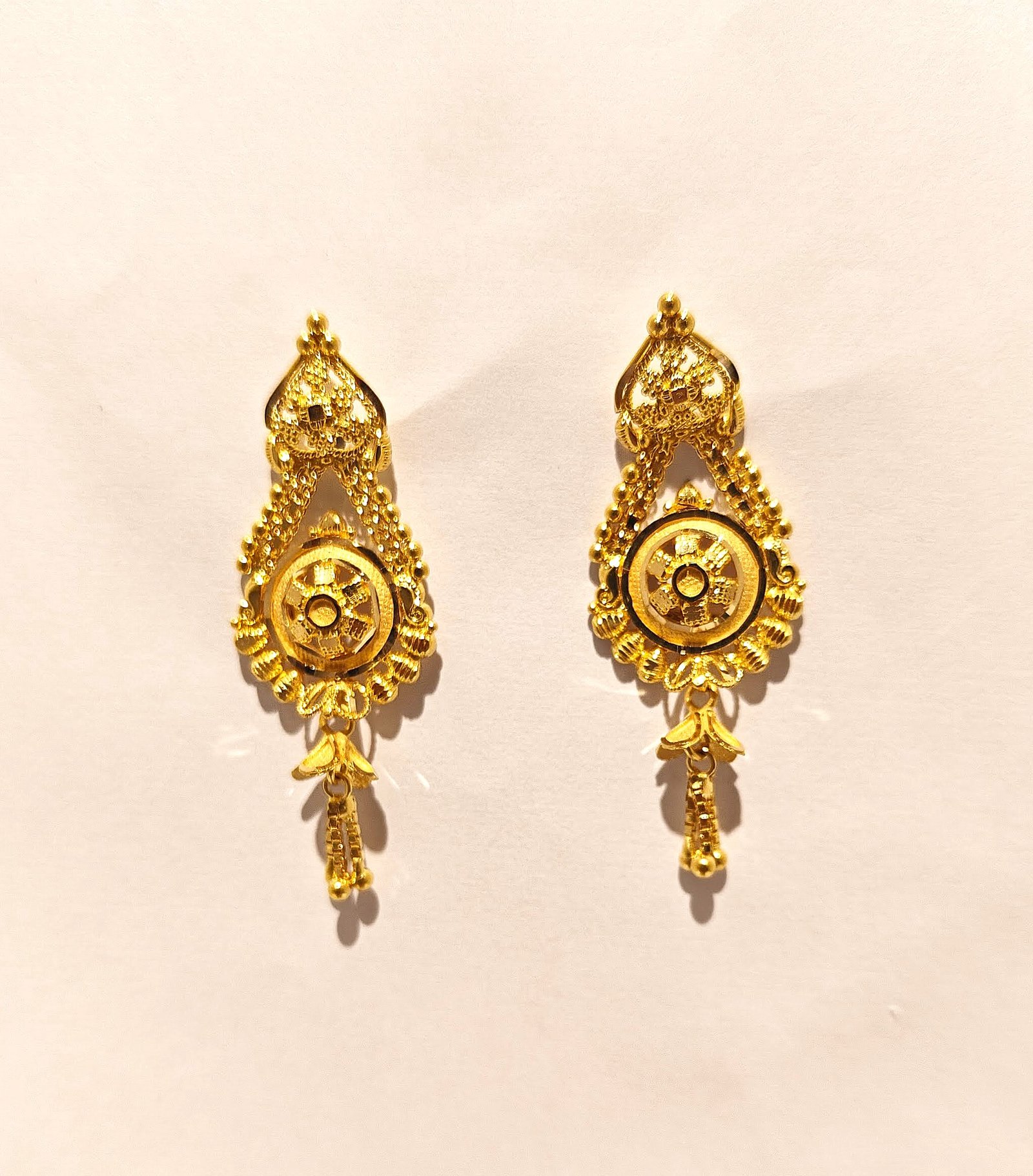 Gracefully crafted in pure gold, the Kashvi Gold Earrings reflect delicacy, elegance, and timeless beauty. Designed with refined detailing and a balanced silhouette, they add a soft, sophisticated charm—perfect for everyday wear as well as festive moments.